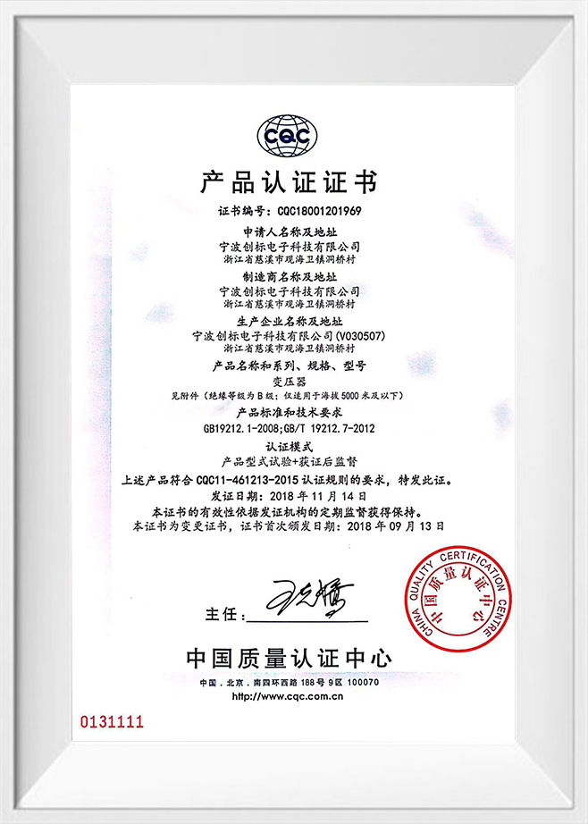 Công nghệ điện tử Ningbo Chuangbiao là nhà sản xuất chuyên nghiệp của tất cả các loại máy biến áp điện tử. Công ty được thành lập vào năm 2010.